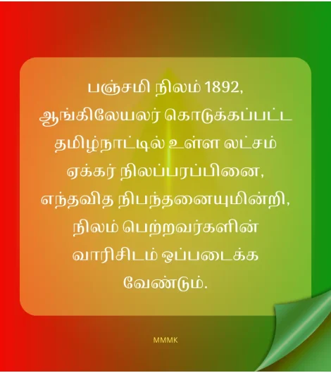 பஞ்சமி நிலம் என்பது அரசின் சொத்து அல்ல, தனி மனிதரின் சொத்து அல்ல— அது தாழ்த்தப்பட்ட சமூகத்தவரின் வரலாற்று உரிமை. அந்த உரிமையை அவர்களுக்கு திருப்பி தரப்படவேணும். ஒடுக்கப்பட்டோரின் நிலம் பறிக்கப்படும் காலம் முடிந்தது. அவர்களின் நிலத்தை மீட்டுத்தரப்படும் காலம் ஆரம்பிக்கப்பட்டுவிட்டது.